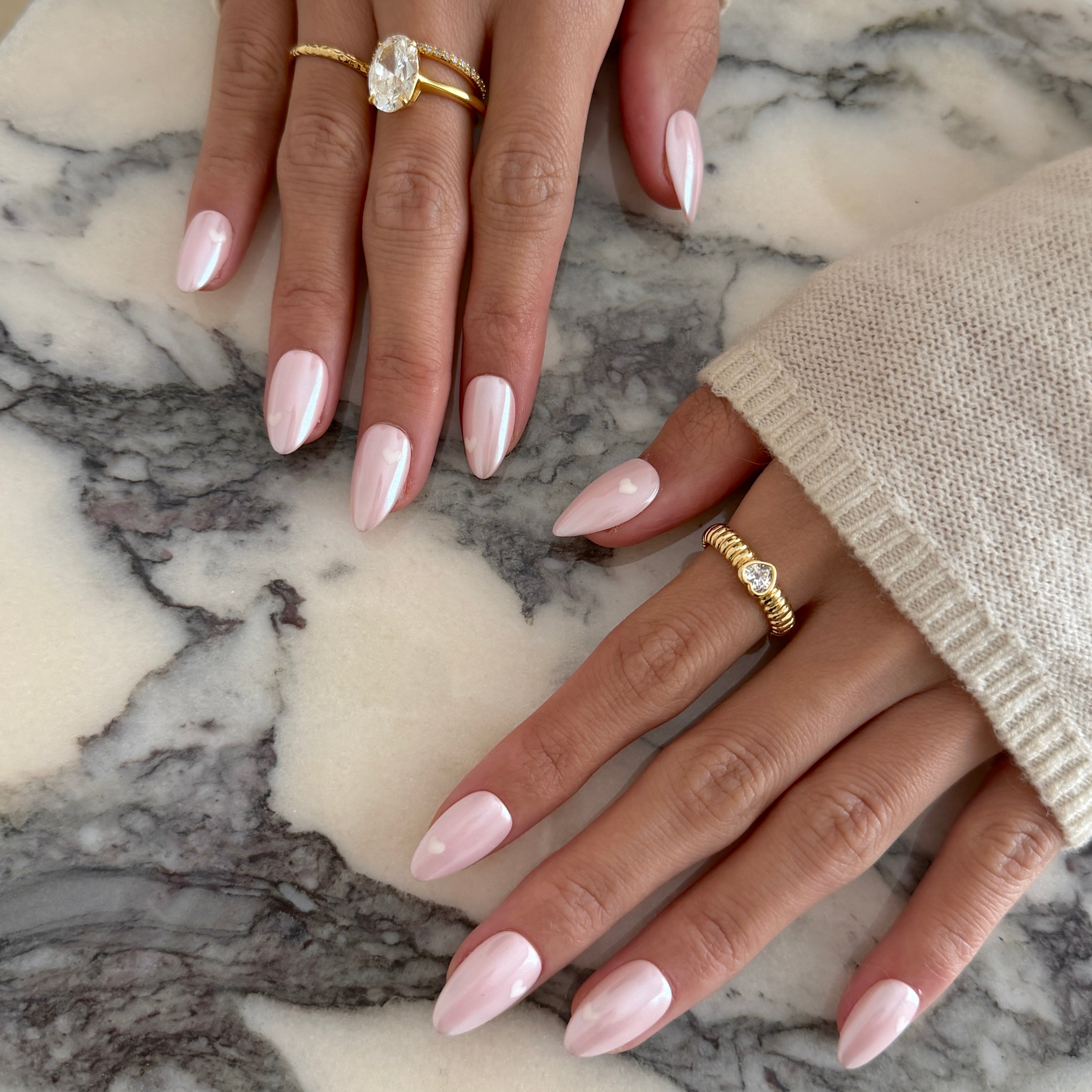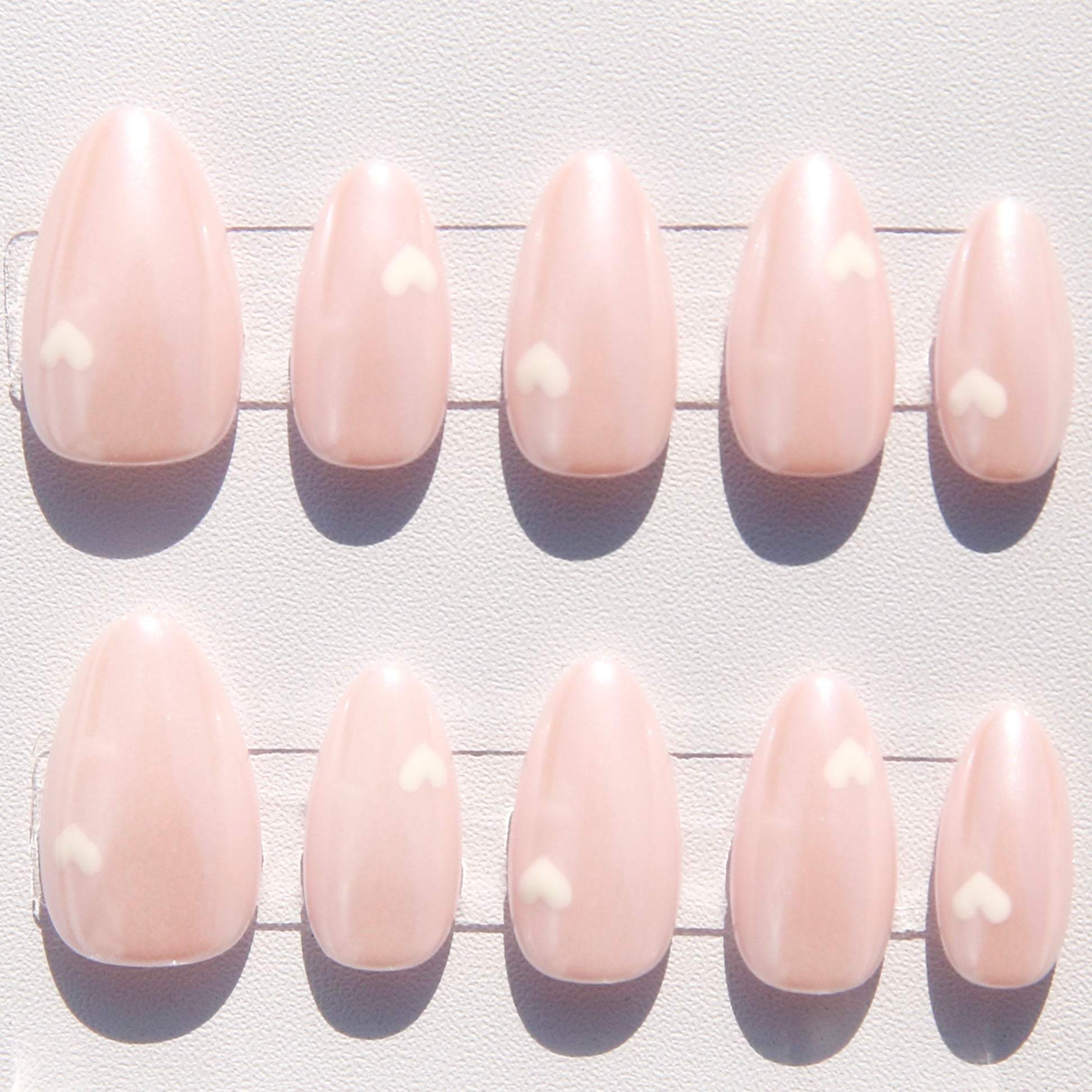 - White Heart Detail: Delicate white hearts are hand‑painted on select nails, adding a subtle, storybook‑romantic touch that feels playful yet refined.