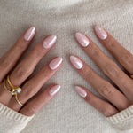 - Pink Chrome Sheen: A silky, blush‑pink chrome finish gives each nail a gentle, pearlescent glow—reflective and luminous without feeling loud, perfect for both everyday wear and special dates.