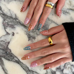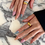 Indulge in the luxurious comfort and easy application of our handmade press-on nails. Choose from various application methods to suit your preferences. Please find a detailed guide here on preparing, applying, and removing our press-on nails according to the specific gel you opt for.