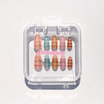 Kylie Plaid is a sheer, fashion‑editor twist on classic tartan. This handcrafted press‑on set inspired by Kylie Jenner, layers translucent washes of caramel, smoke blue, moss, mauve, and chestnut with ultra‑fine plaid lines for a soft, glassy finish that feels like your favorite designer flannel reimagined for modern It‑girl glam.
