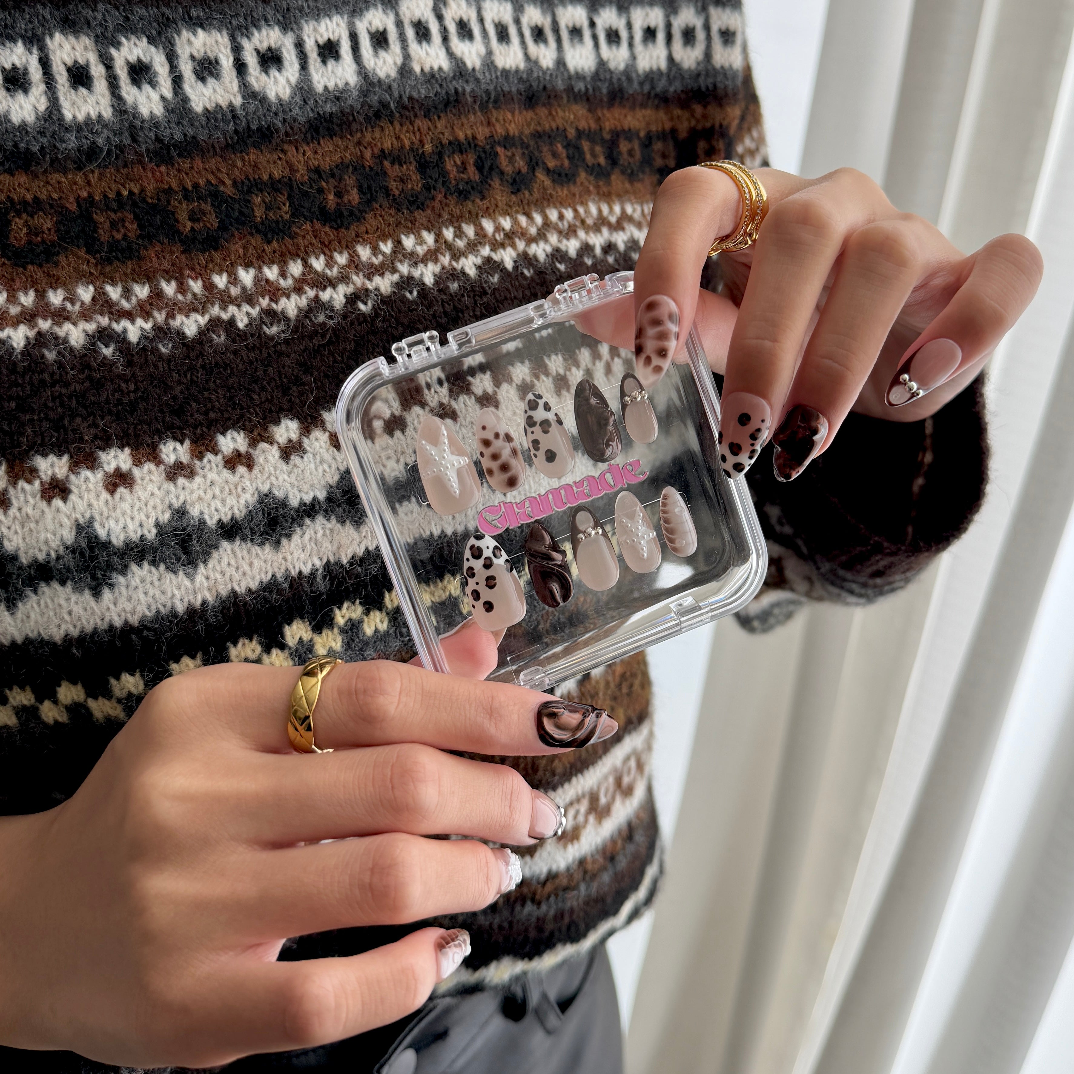 Each set of our handmade press-on nails is meticulously crafted with utmost care and attention to detail. However, please be aware that due to the handmade nature of our products, slight variations in color, shape, and design may occur. We strive to maintain consistency and quality across all sets, but these small differences are what make each nail unique and special. Rest assured, our team of skilled artisans ensures that every set is made with the same level of dedication and precision.