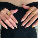 Indulge in the luxurious comfort and easy application of our handmade press-on nails. Choose from various application methods to suit your preferences. Please find a detailed guide here on preparing, applying, and removing our press-on nails according to the specific gel you opt for.