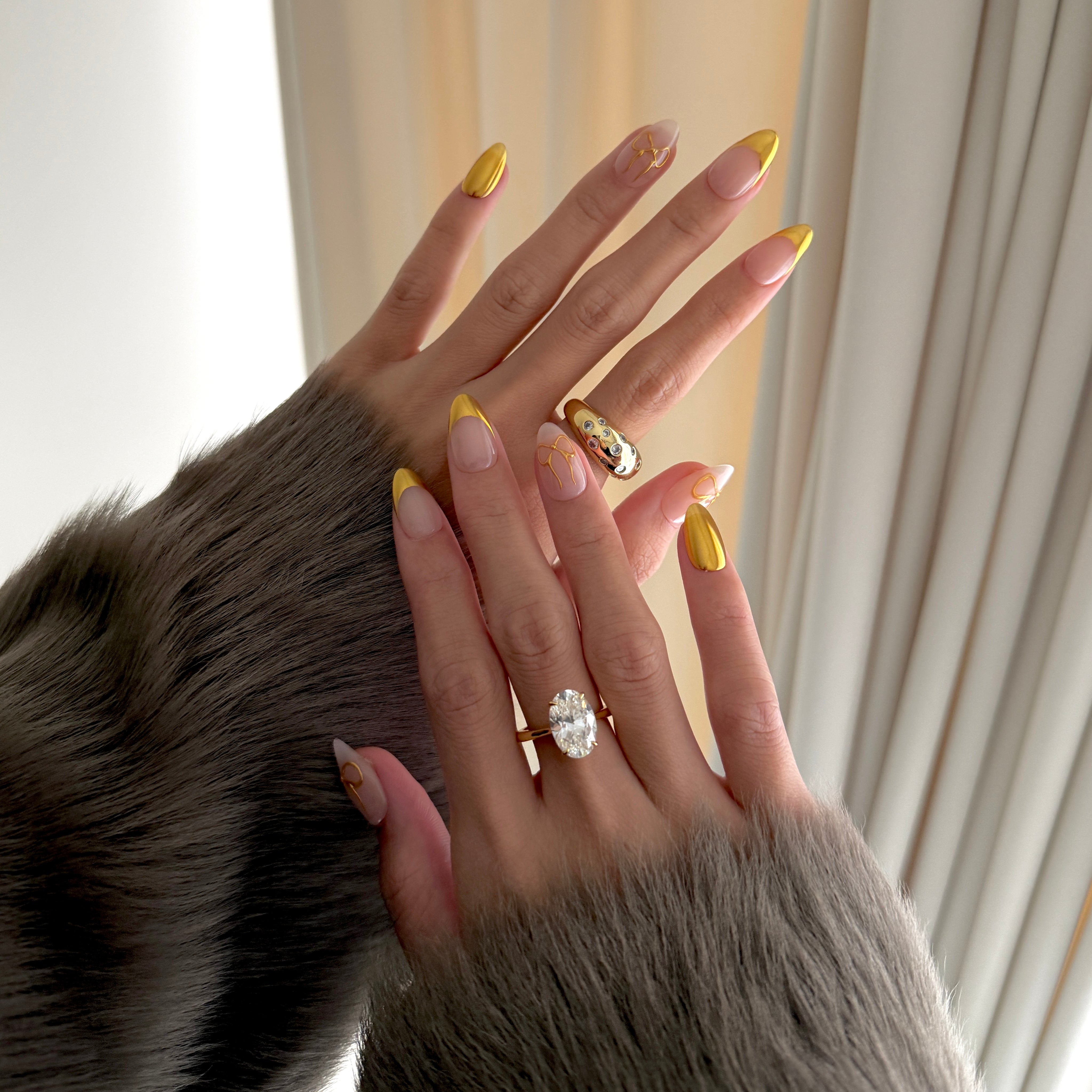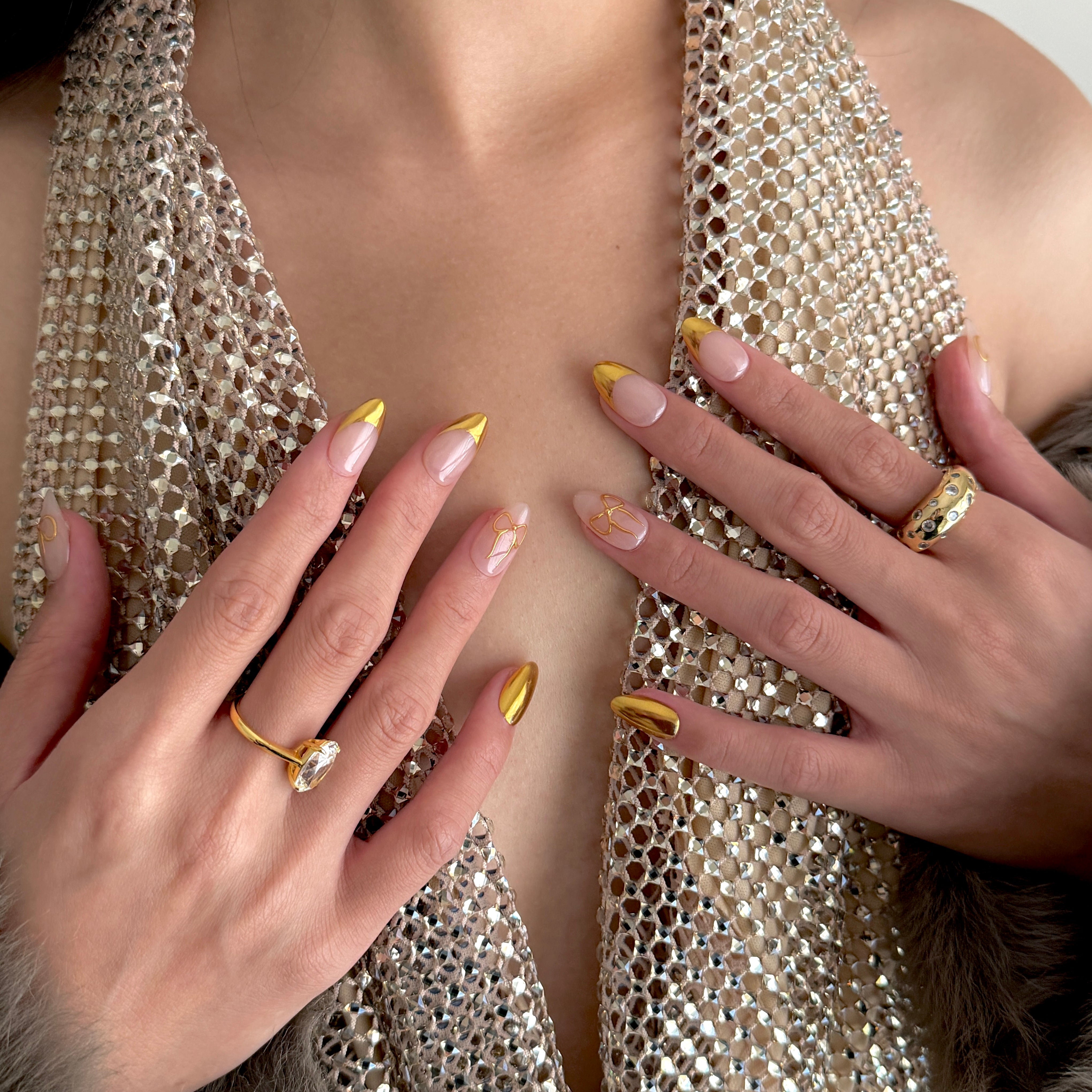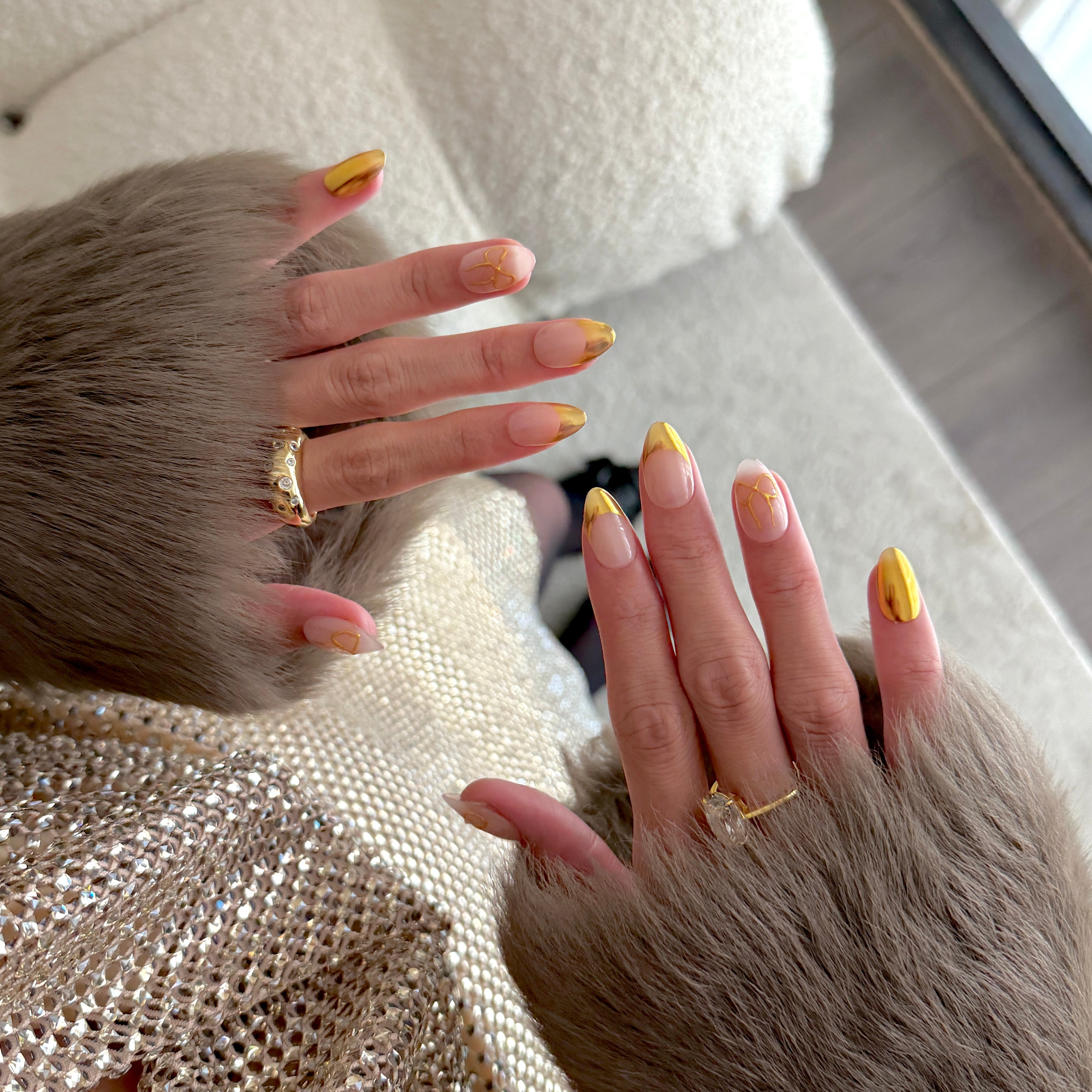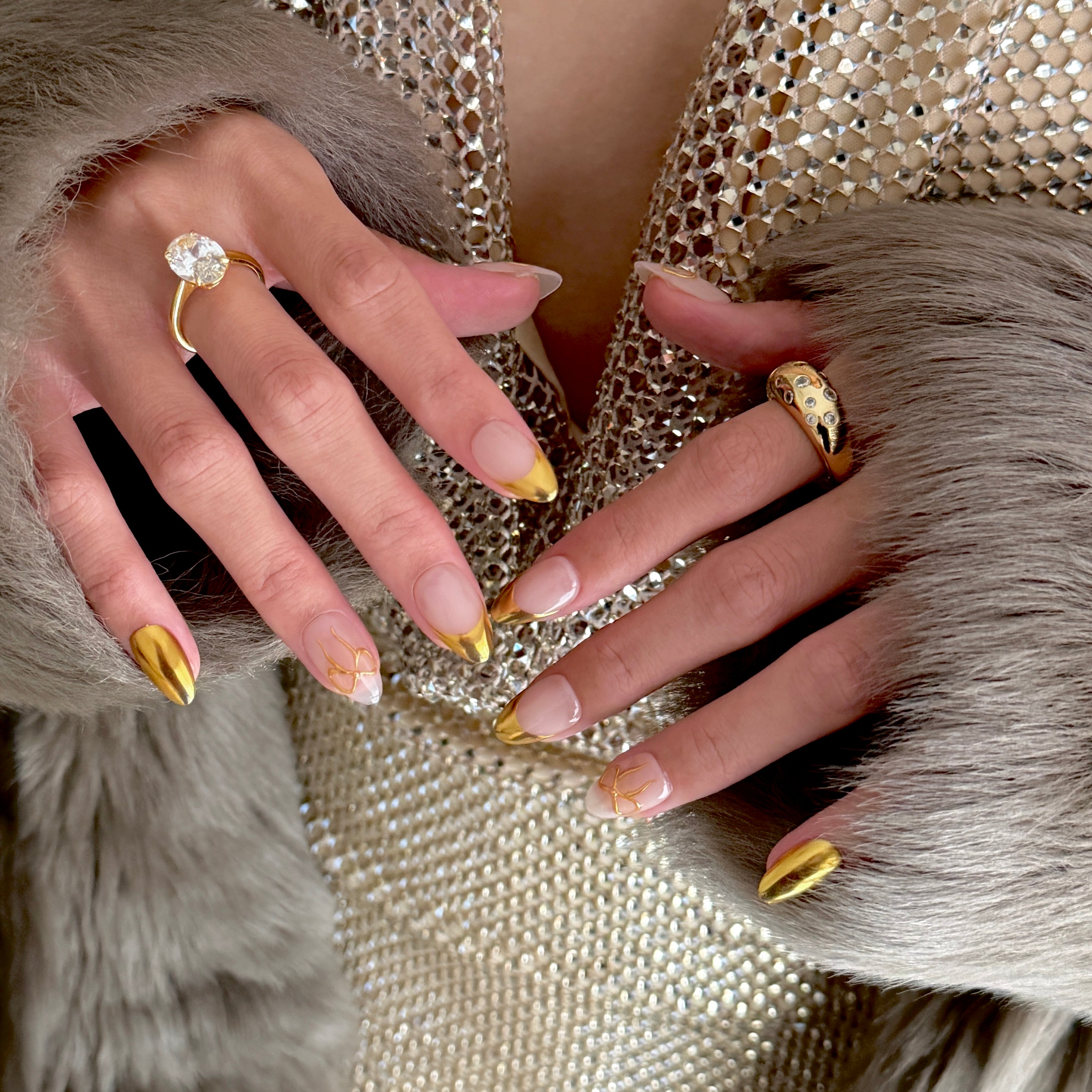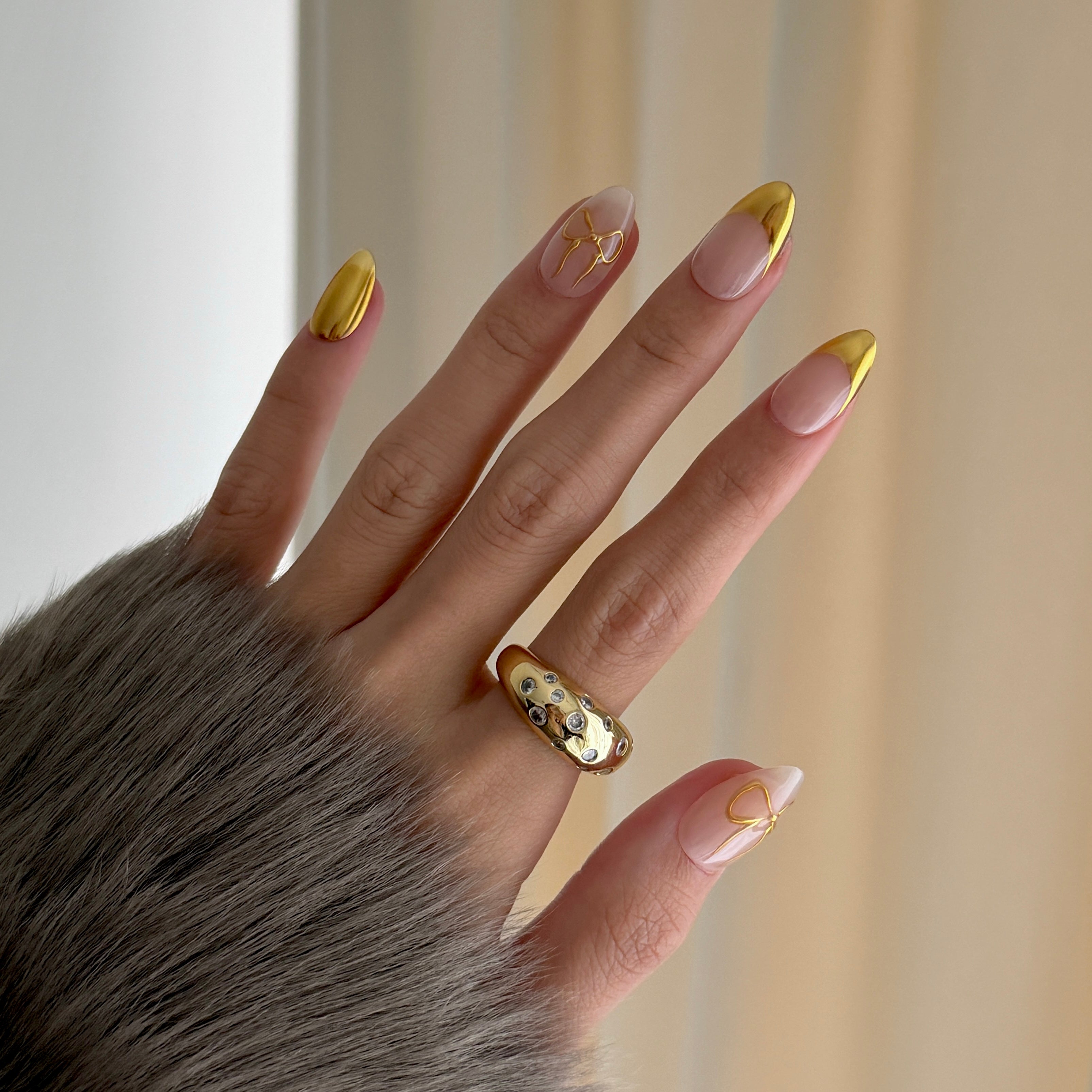• Golden Chrome French Tips:Β Sleek and shiny tips that add a modern twist to classic elegance.
