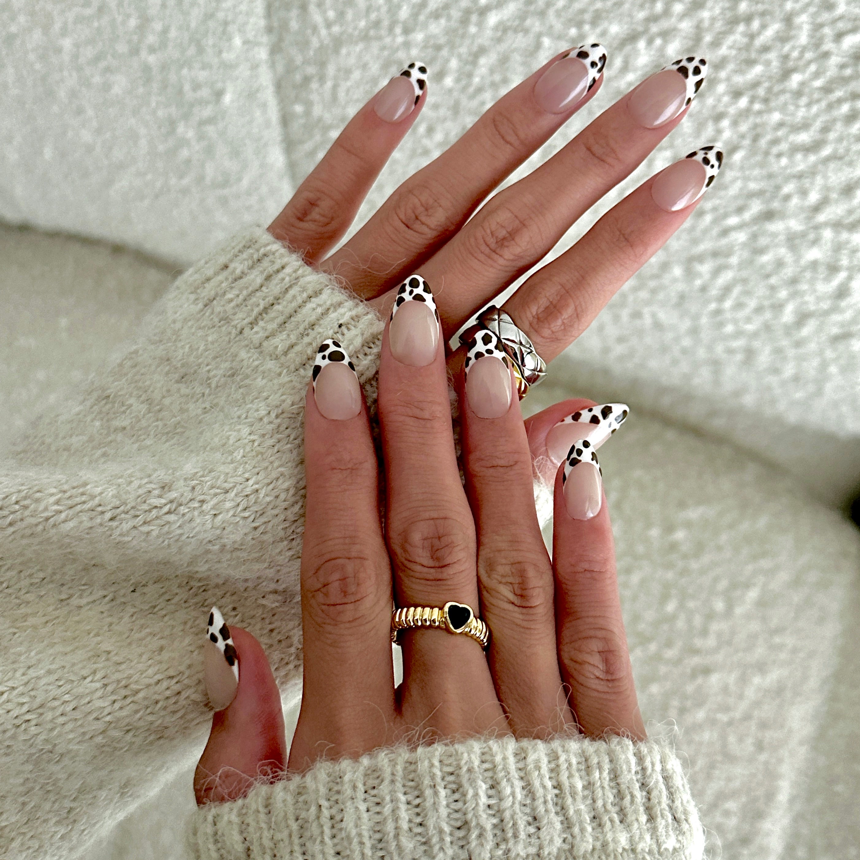 - Chic Cow Print French Tip: A stylish twist that combines classic elegance with whimsical flair.