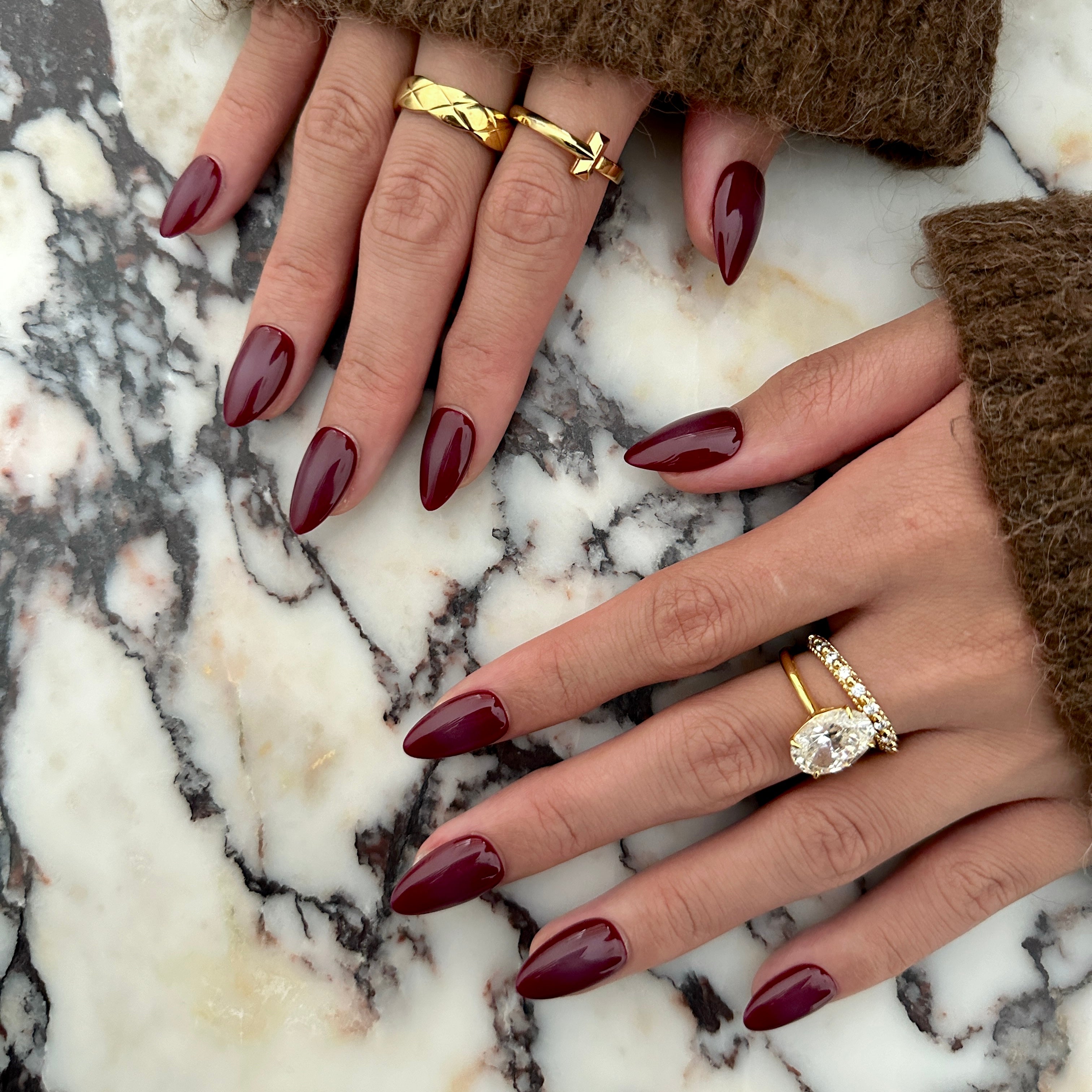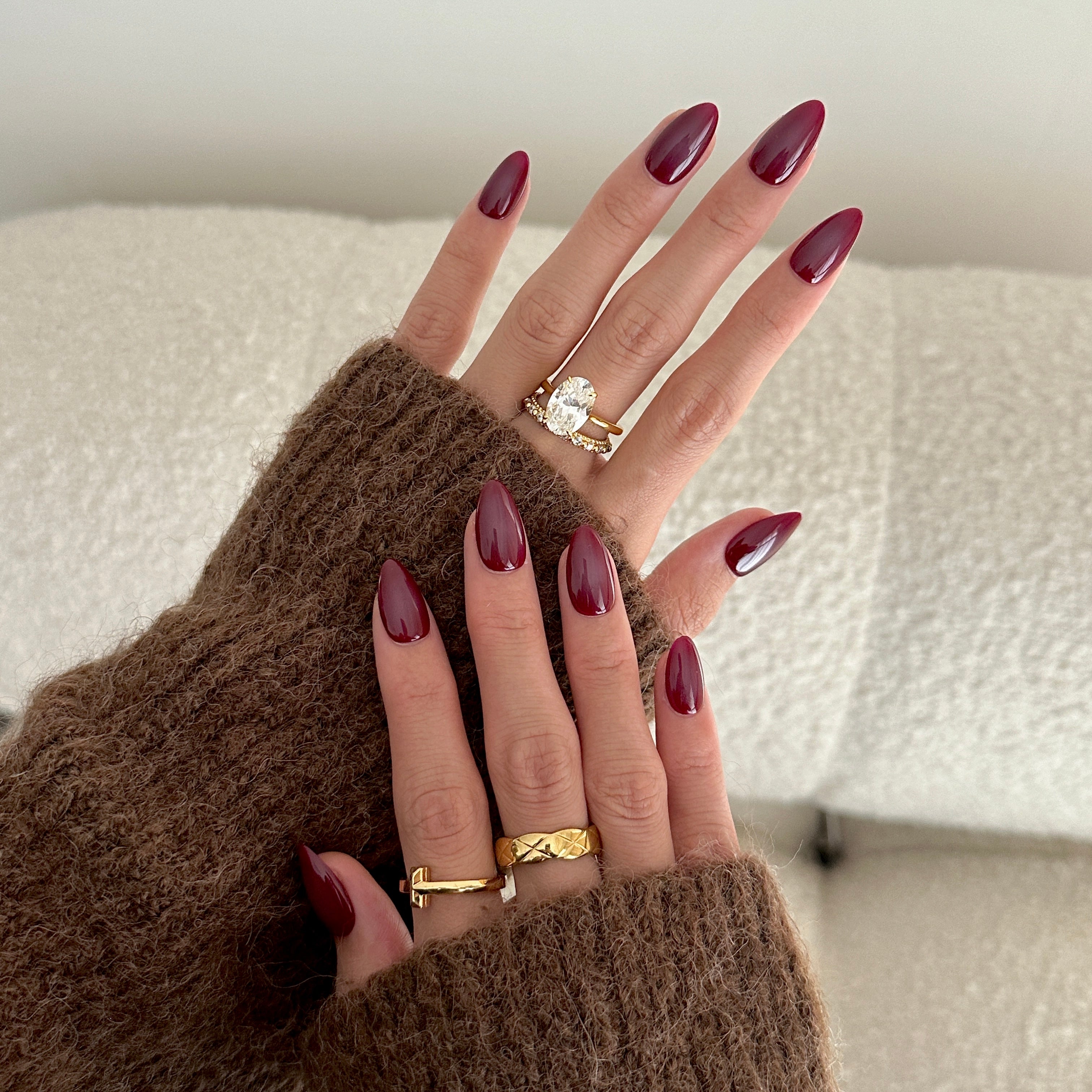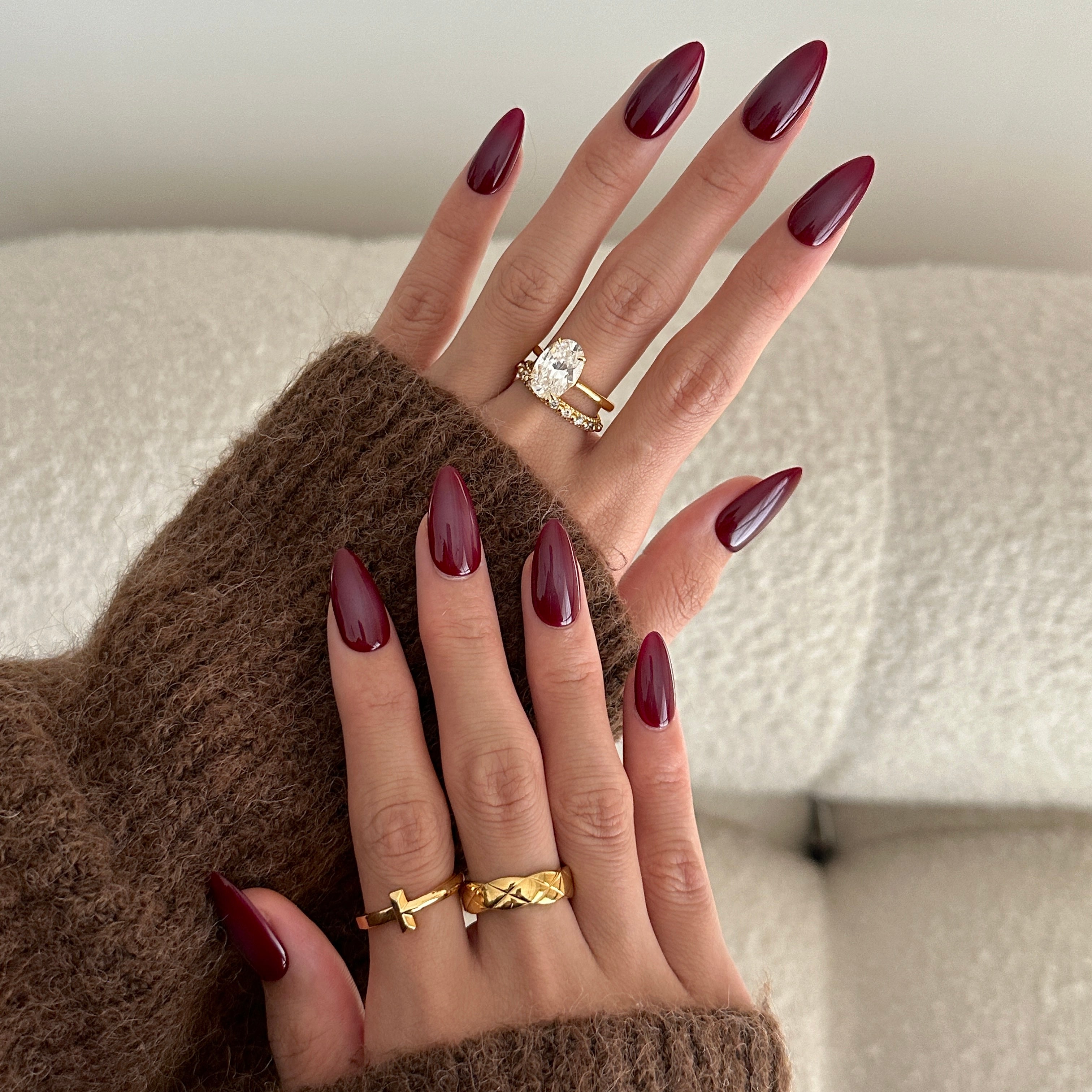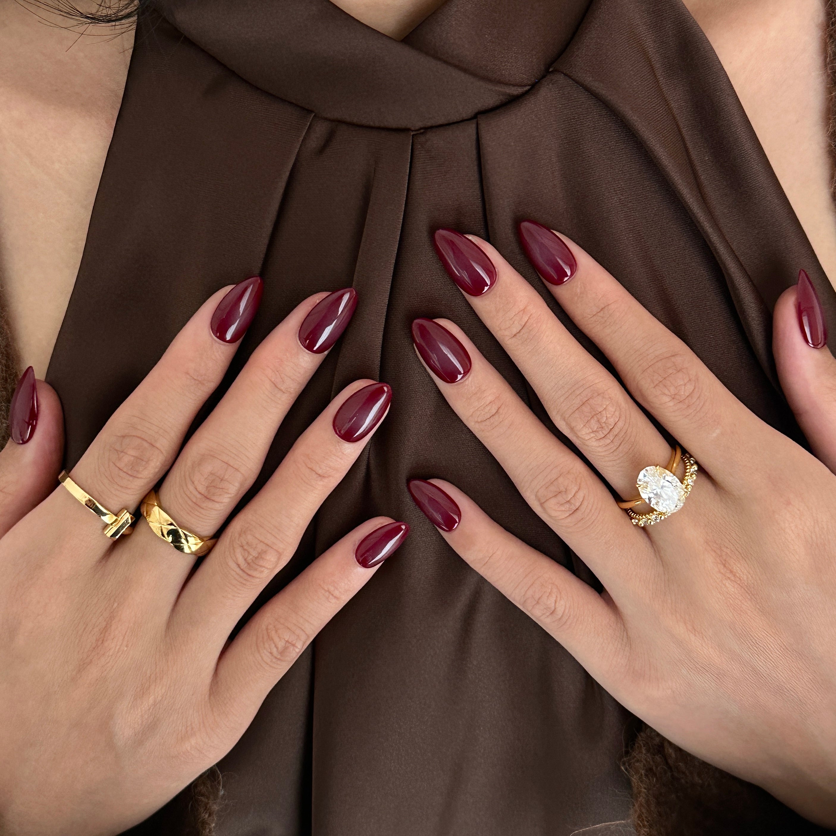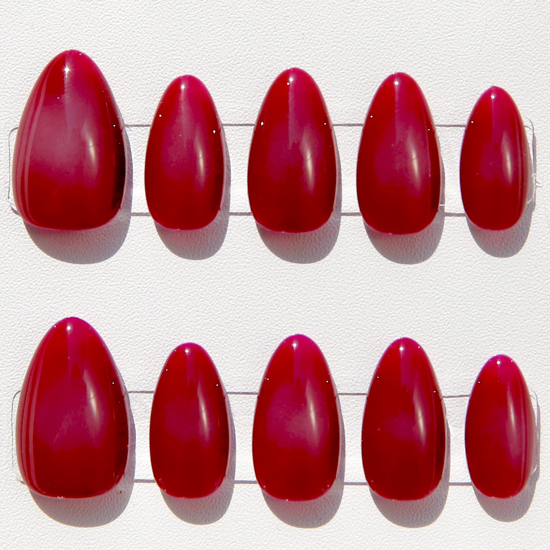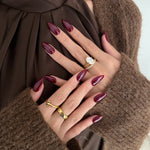 Step into the fall season with Mulberry Aura, a captivating handmade press-on nail set that embodies autumn's rich hues. Featuring a deep red base with a subtle white aura, this design offers a perfect blend of warmth and sophistication for your fall wardrobe.