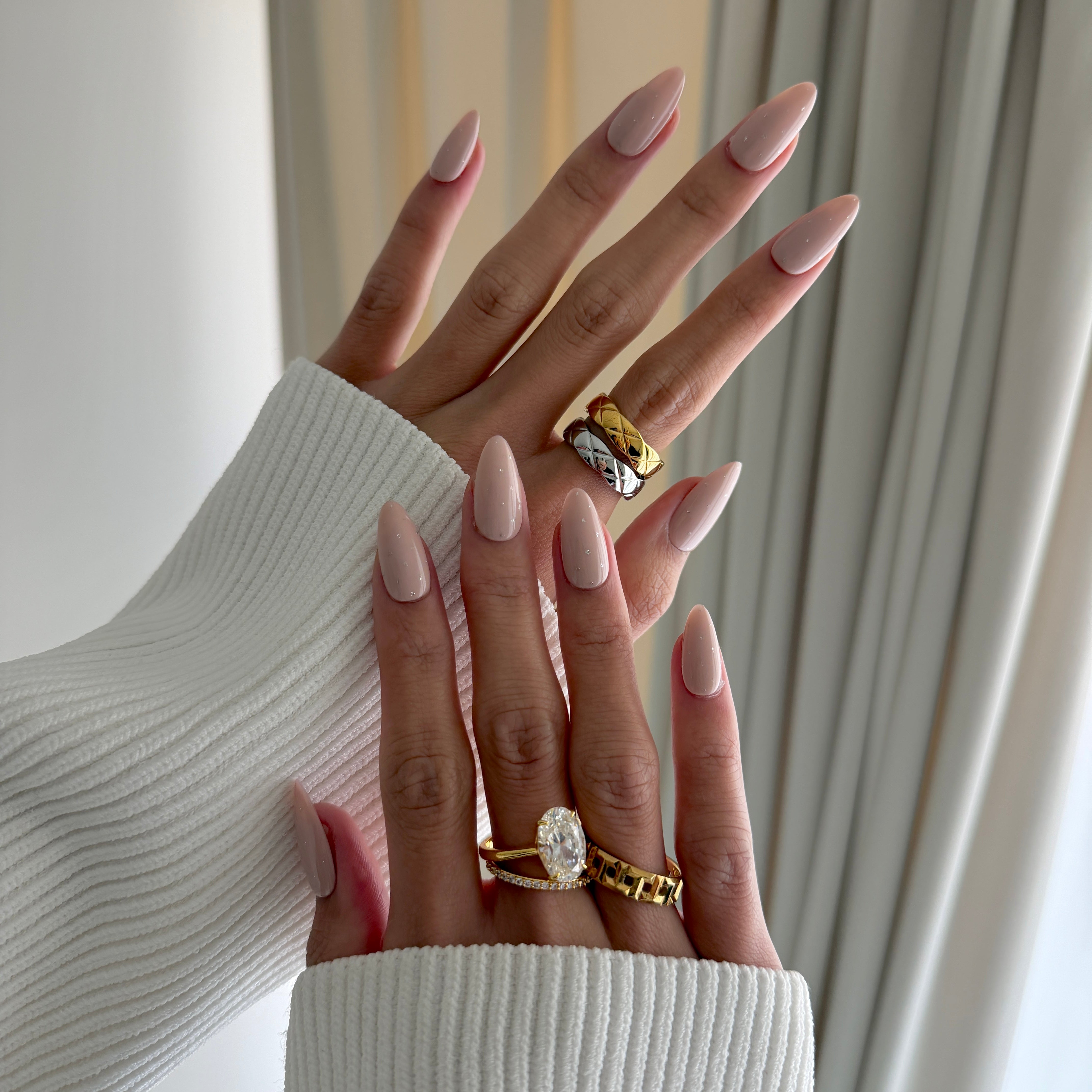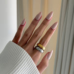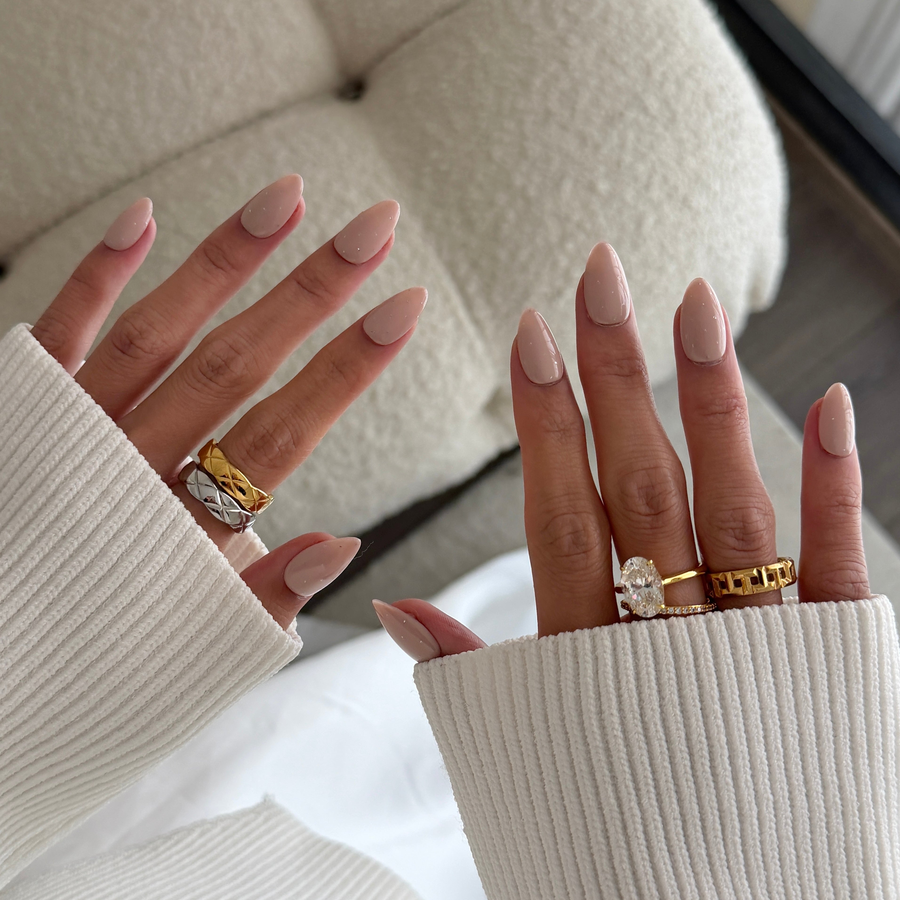 - Oatmilk Base: A translucent, oatmilk‑nude gel that softly perfects the natural nail, giving a clean, “your nails but better” finish with a subtle, glossy sheen.