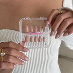 Indulge in the luxurious comfort and easy application of our handmade press-on nails. Choose from various application methods to suit your preferences. Please find a detailed guide here on preparing, applying, and removing our press-on nails according to the specific gel you opt for.
