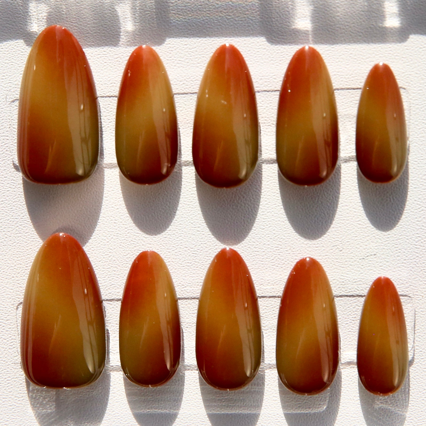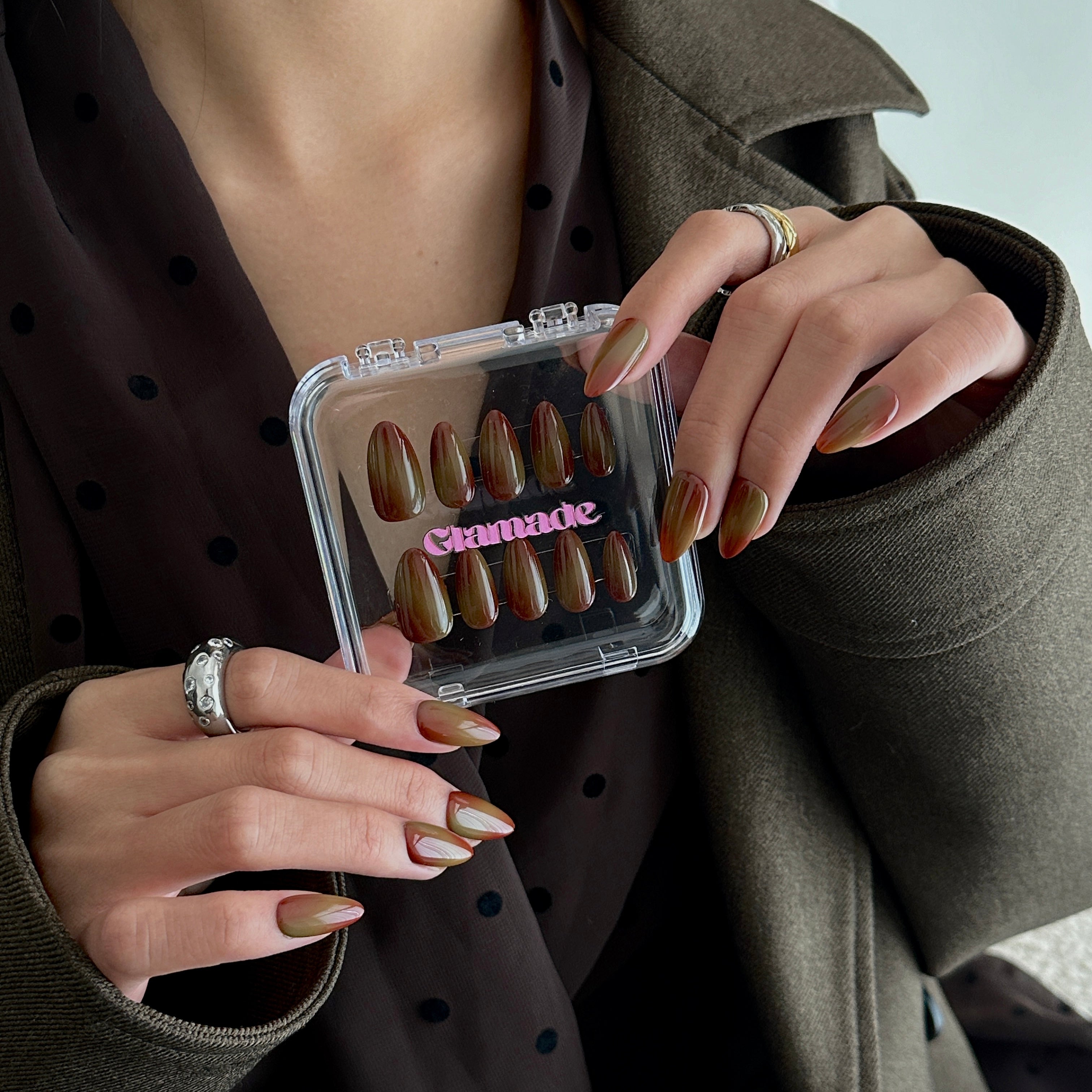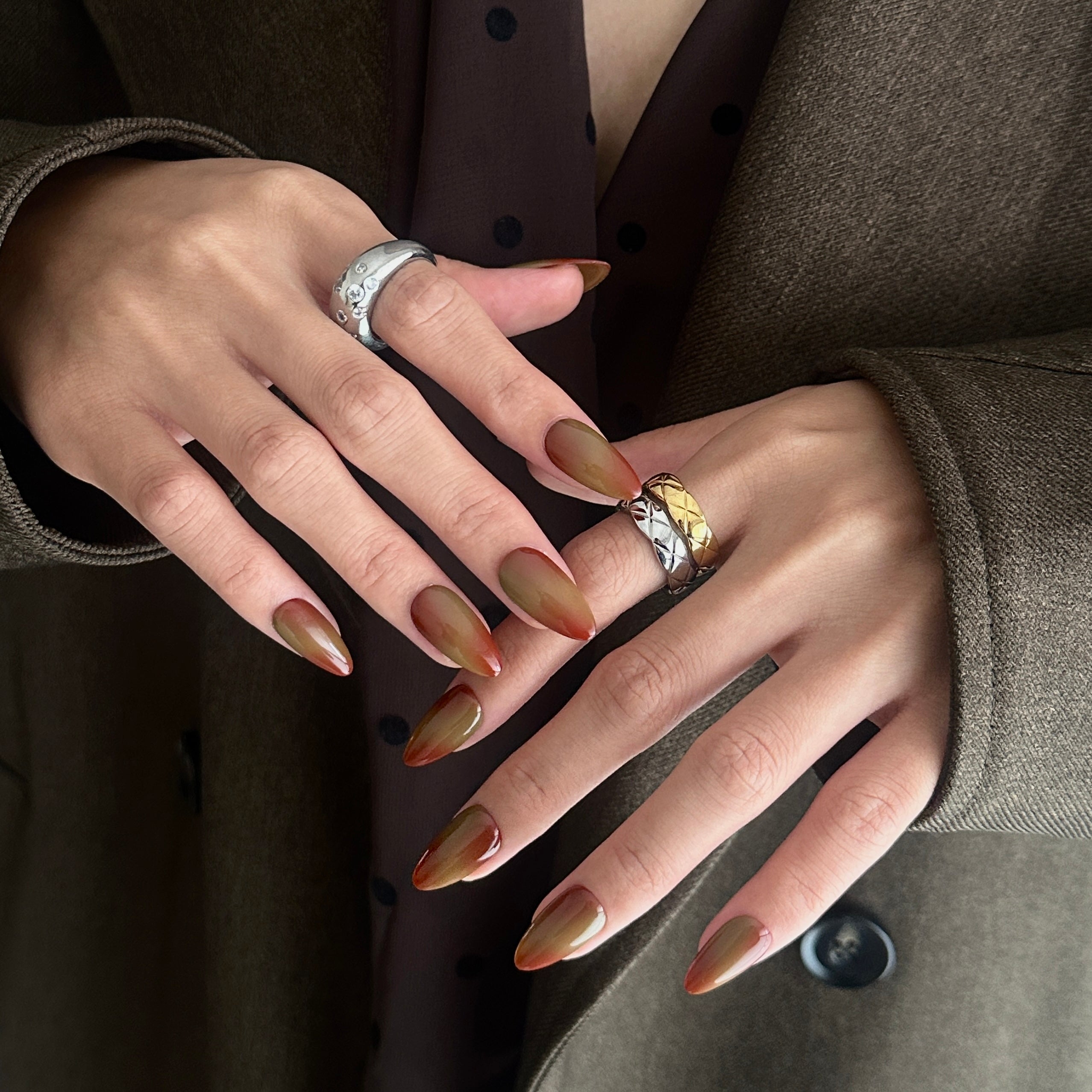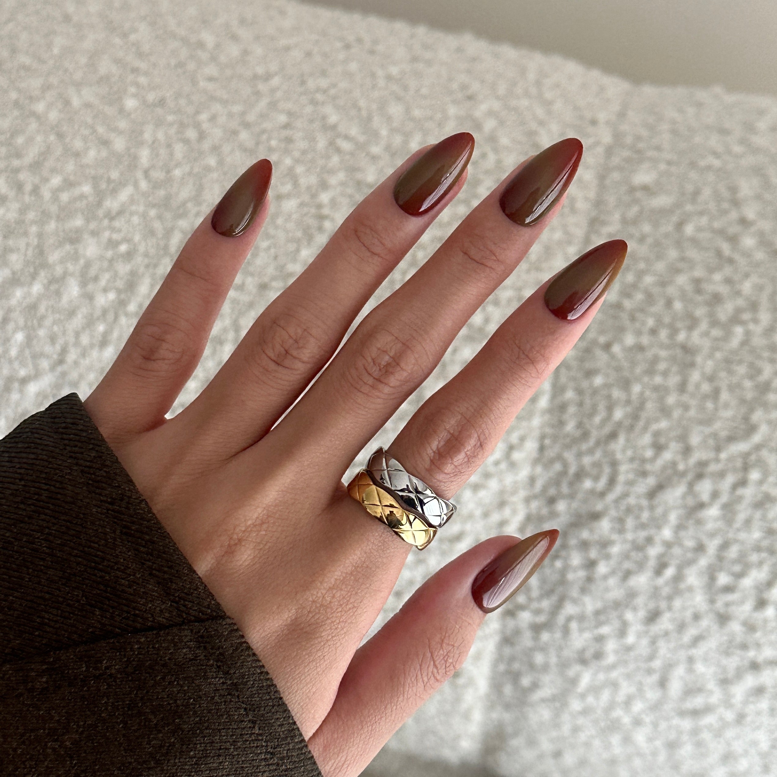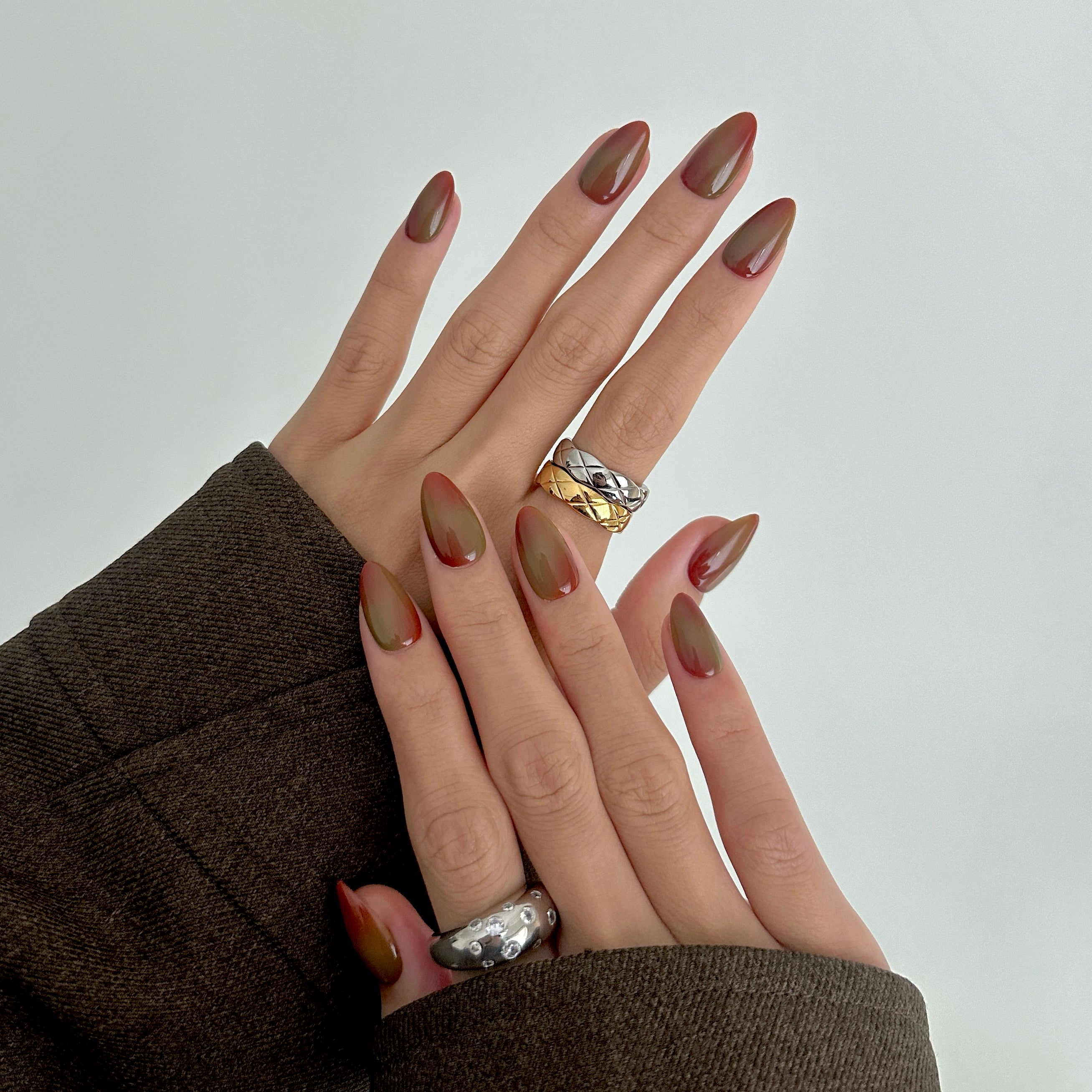 Embrace the season's hottest color combo with our "Rustic Olive" nail set. This stunning design features a sophisticated khaki and brown ombre that evokes the earthy elegance of autumn landscapes.