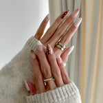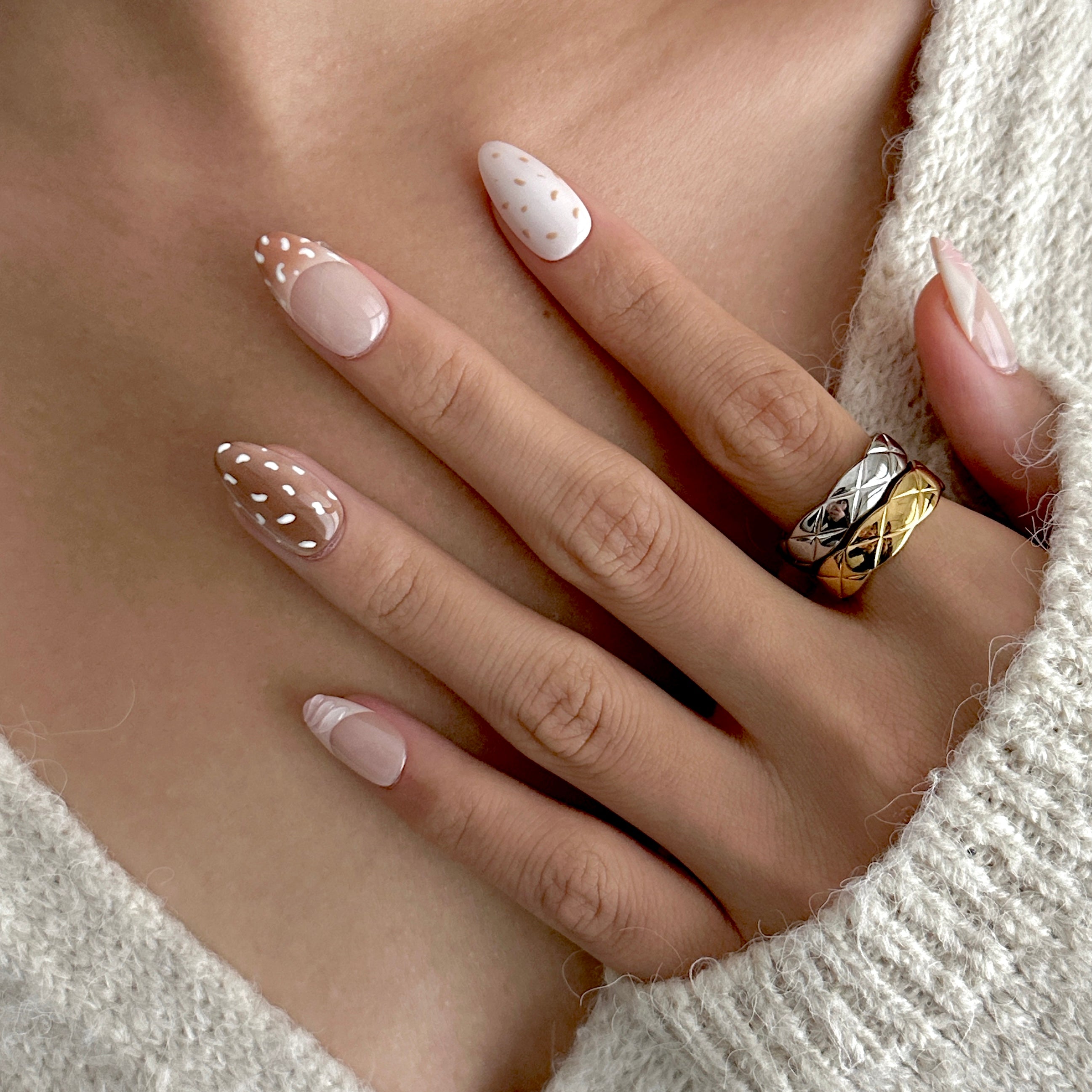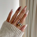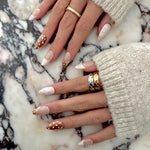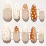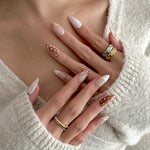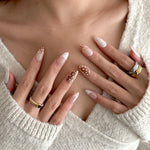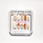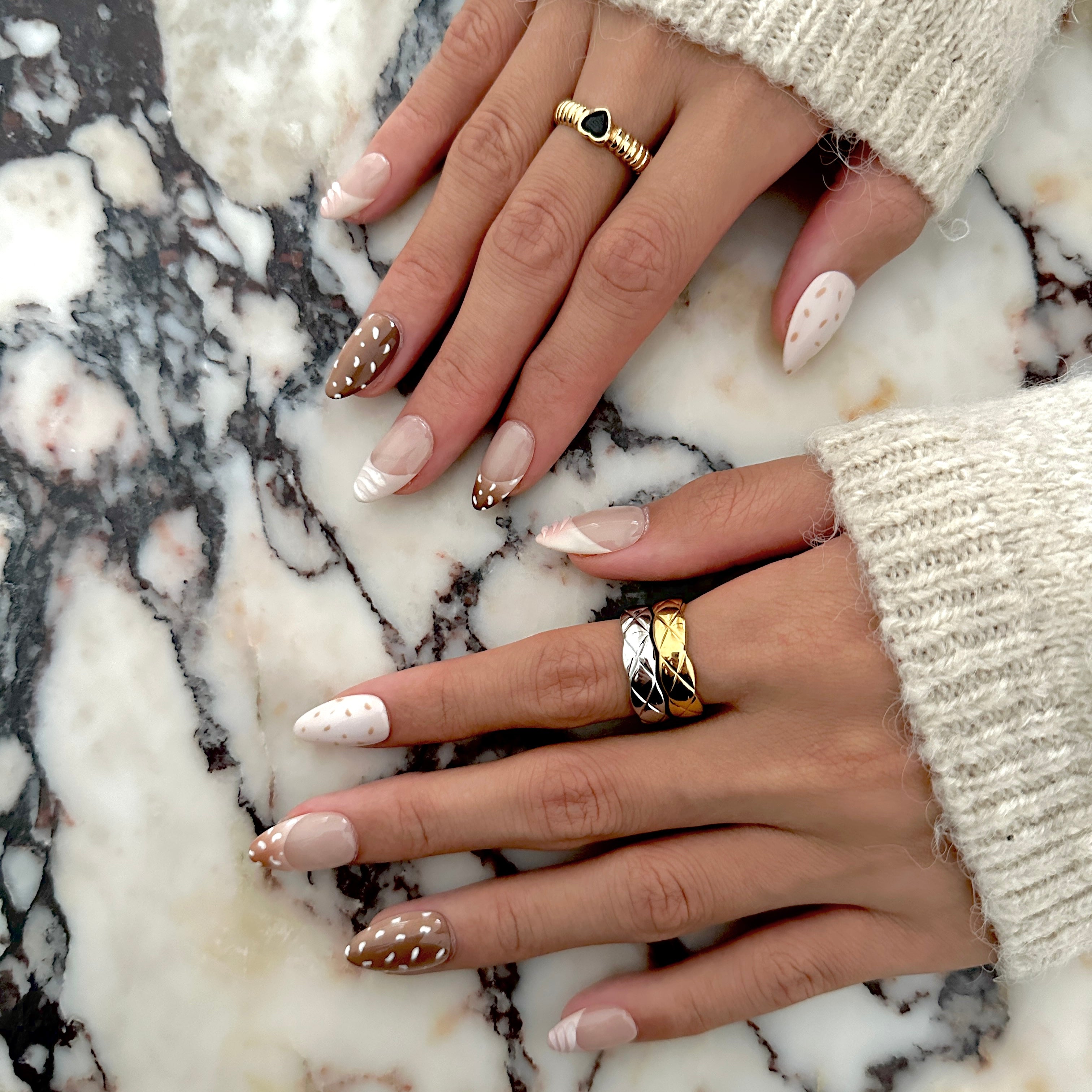 Introducing this season's trendy deer print nail, Sweet Fawn, a harmonious blend of nature’s elegance and seasonal charm. This delightful handmade press-on nail set features a chic deer print French tip design, capturing the cozy essence of fall with its warm, earthy tones. The classic French tip is reimagined with a woodland twist, while the 3D swirl design introduces a touch of modern sophistication.