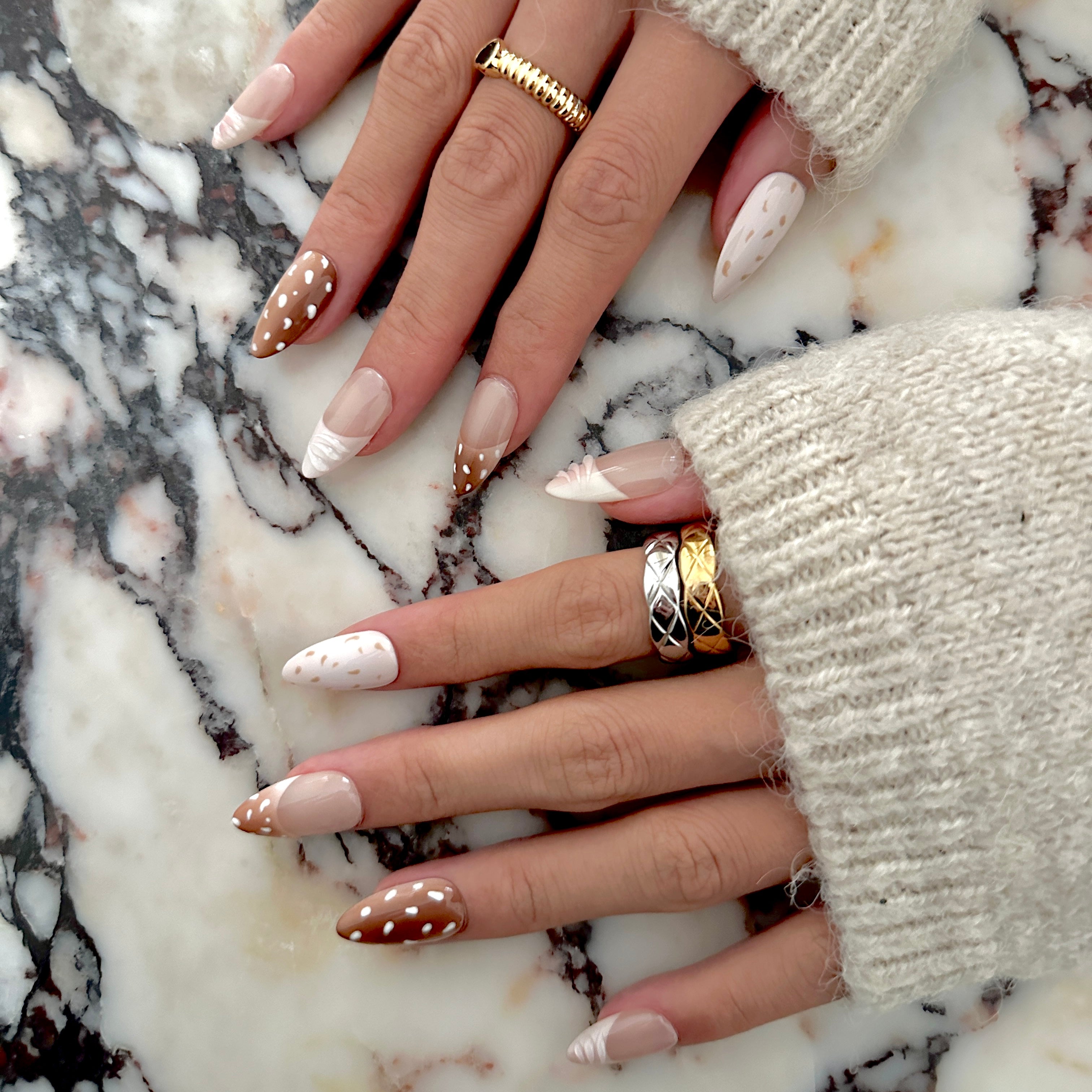 - Chic Deer Print French Tip: A stylish twist that combines classic elegance with whimsical flair.