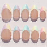 Embrace the spirit of spring with our Pastel Aura French Tip handmade press-on nails, a captivating blend of classic elegance and vibrant pastel hues. This set captures the essence of a blooming garden, combining the timeless appeal of the French tip with a refreshing ombre of mixed pastel colors.